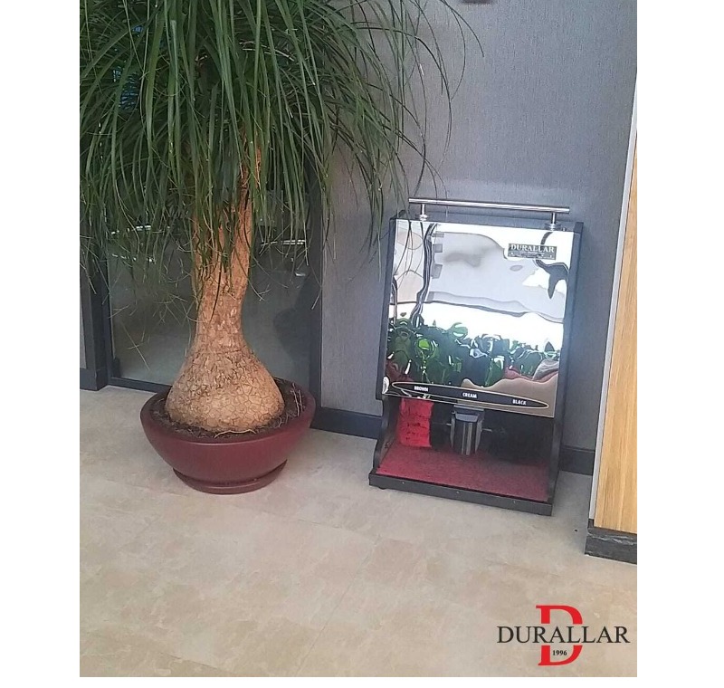 ACM-100 Ayakkabı Cila Makinası, ofisler, oteller ve profesyonel kullanım alanları için tasarlanmış yüksek performanslı bir ayakkabı bakım çözümüdür. 304 kalite paslanmaz çelik gövdesi sayesinde uzun ömürlü ve dayanıklı bir kullanım sunar. Makine, fotoselli ve butonlu çalışma sistemi ile hem otomatik hem manuel kullanım imkânı sağlar; ayağınızı uzattığınızda fotosel sayesinde makine otomatik çalışır veya üzerindeki düğmeye basarak manuel kullanım yapabilirsiniz.